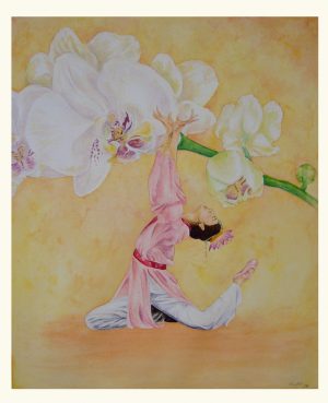 Rose a expliqué que la Palme d’orchidée, telle qu’elle est représentée dans son tableau, est utilisée dans la danse classique chinoise. J’ai pris 10 heures pour réaliser cette aquarelle, « à ma grande joie, elle s’est classée deuxième au concours ».