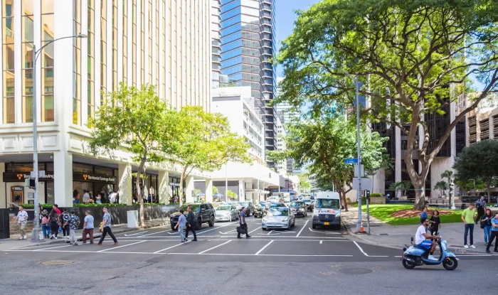 Le centre-ville d’Honolulu est le cœur historique et commercial de la ville. Ce quartier offre des tours de bureaux modernes et l’architecture hawaïenne traditionnelle. (Brave Behind the Lenz/Shutterstock)