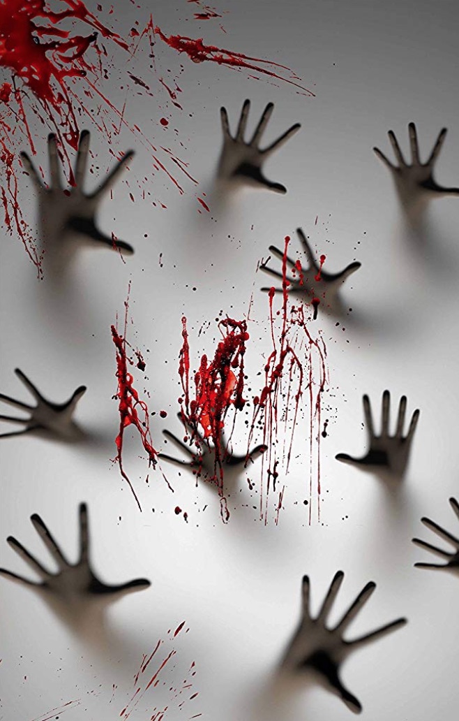La couverture évoque une scène tout droit sortie d’un film d’apocalypse de zombies, et lorsqu’elle est placée sur une porte ou une fenêtre avec une lumière qui brille par-derrière, elle semble réaliste.