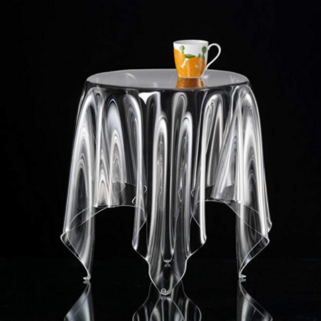 La table illusion est également disponible en couleur blanc glacé, et ce style est parfaitement fait pour ressembler à un tissu jeté par-dessus une table ronde invisible.
