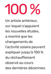 L’autre part du réchauffement enregistré pourrait s’expliquer par les changements de l’activité solaire documentés par la NASA, selon les articles.