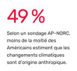 Moins de la moitié des Américains estiment que les changements climatiques sont d’origine anthropique, selon un sondage AP-NORC publié au début de l’année.