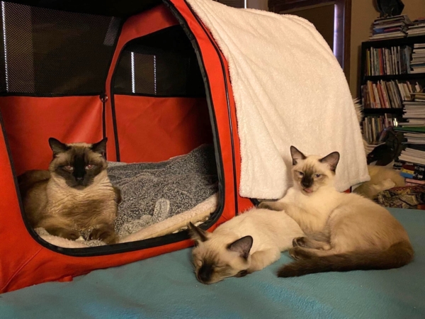 Le félin « Jack » (à gauche) se détend avec les deux clones identiques « OJ » et « Thud ». (Photo de courtoisie)