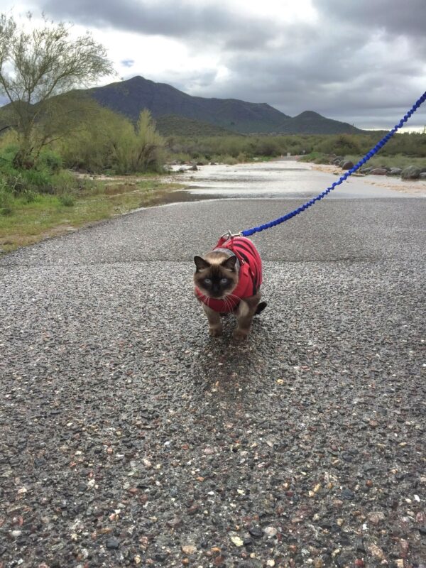 Le félin « Jack » aime nager dans la piscine avec son parent Tammy et faire de longues promenades en laisse (Photos de courtoisie)
