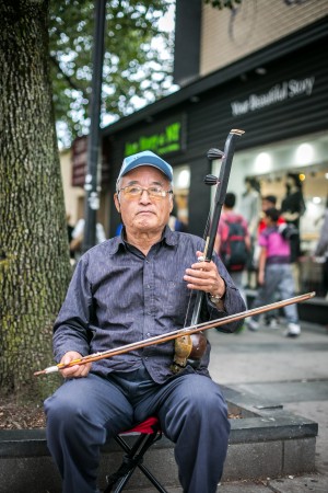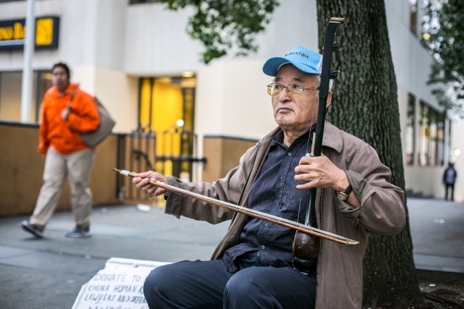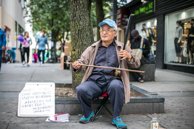 Xin Xiulu jouant du erhu, à Flushing, N.Y., le 29 septembre 2016. Il fait don de sa recette aux avocats des droits de l'homme, emprisonnés en Chine. Xin était autrefois un célèbre musicien professionnel dans son pays, mais depuis qu’il a secouru les étudiants blessés lors du massacre de Tiananmen en 1989, il est devenu, aux yeux du régime, un rebelle contre-révolutionnaire.