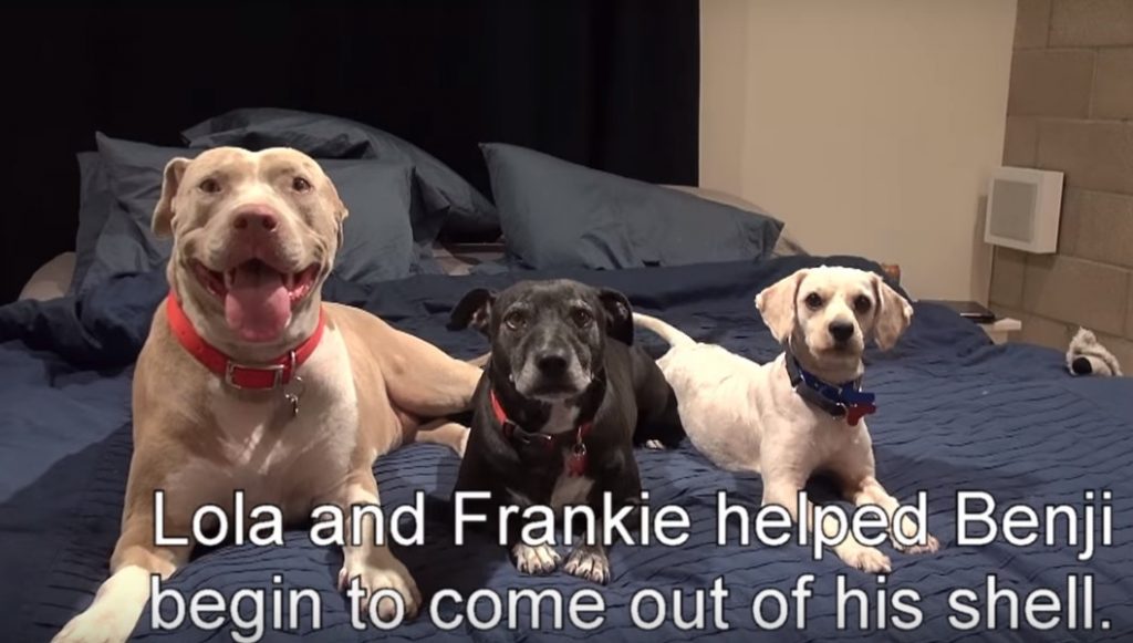 « Lola et Frankie ont aidé Benji à progressivement sortir de sa coquille » ©Capture d’écran YouTube | Hope For Paws – Official Rescue Channel