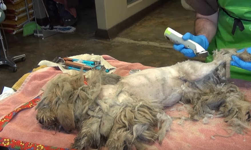 Tout en rasant sa fourrure négligée, les secouristes ont été estomaqués de voir les nombreuses puces et tiques qui s’y trouvaient. Après que Benji a été douché, nettoyé et soigné, Lisa l’a amené chez elle.