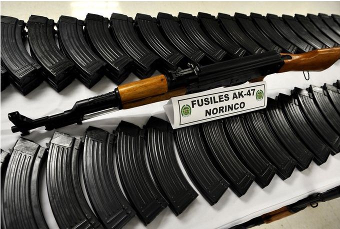Un stock de fusils d’assaut Kalachnikov produit par la société chinoise Norinco, saisi par la police colombienne, en 2011. (LUIS Robayo / AFP / Getty Images)