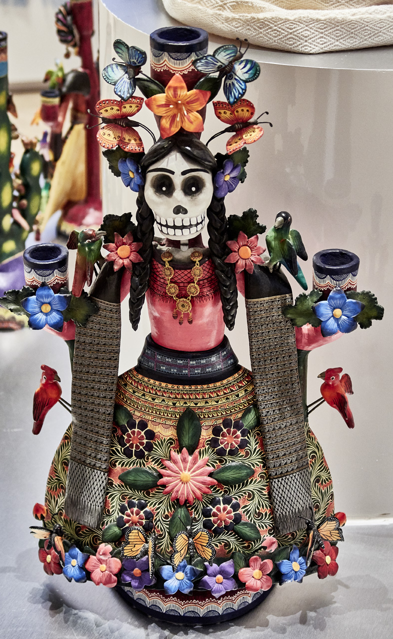 La célébration du Jour des Morts au Mexique est inscrite au Patrimoine culturel immatériel de l’Humanité de l’Unesco depuis 2008, preuve s’il en est que ce culte revêt une importance considérable dans la vie des peuples autochtones du pays. En effet, on y célèbre encore avec ferveur la fusion de croyances indigènes préhispaniques et de rites religieux catholiques introduits par les conquistadors au 16e siècle. Jadis les Aztèques, appelés aussi les Mexicas, avaient pour coutume de réserver deux jours de fête à leurs défunts, un pour les enfants et un second pour les adultes. Ils célébraient le retour transitoire sur terre des êtres chers décédés et c’était l’occasion de danser et de chanter autour d’offrandes disposées sur les tombes. Les Espagnols avaient également l’habitude d’offrir aux morts des fleurs, voire même du pain et du vin pour les apaiser, par peur qu’ils ne les entraînent avec eux et ils allumaient de nombreux cierges pour les guider vers le bon chemin.