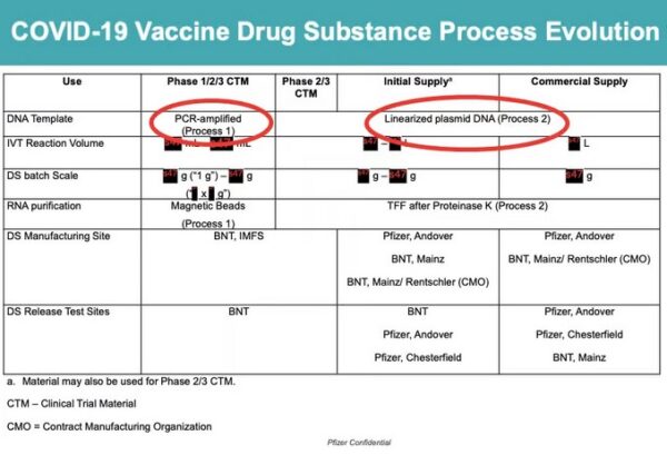 Toutefois, afin d’amplifier le processus de distribution à grande échelle du vaccin à la population dans le cadre de son « autorisation d’urgence », Pfizer est passé à une autre méthode – le PROCESSUS 2 – pour amplifier l’ARNm.