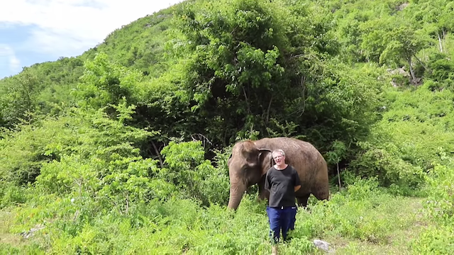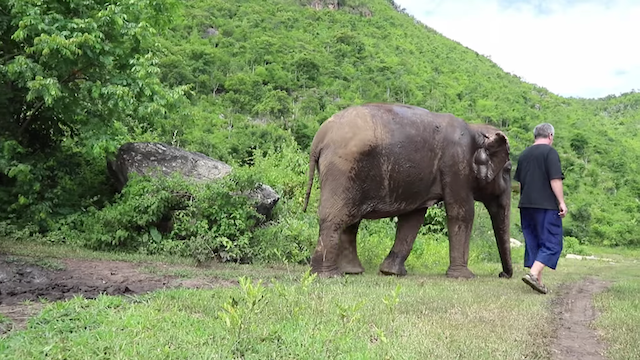 Lam Duan, à l’instar des 28 autres éléphants du Thailand’s Elephants World – un sanctuaire pour les éléphants âgés, handicapés et malades – a de la chance d’être prise en charge par Paul Barton, qui vit au refuge avec sa femme, Khwan.