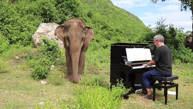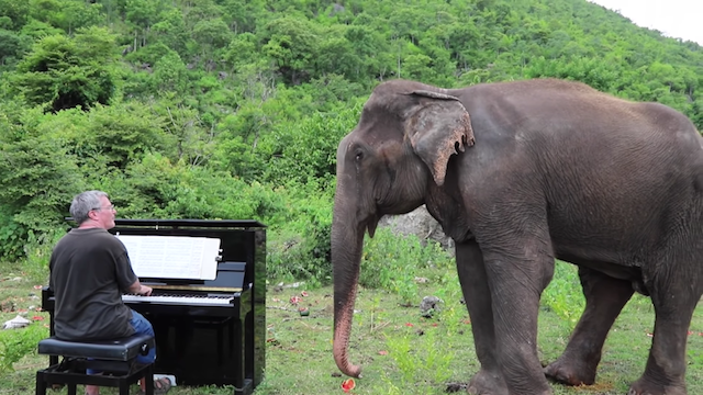 Une éléphante aveugle et agitée apprécie l’interprétation de Bach jouée au piano et commence à « danser »
