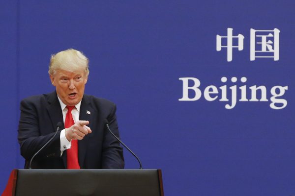 Donald Trump s’adresse aux chefs d’entreprises chinois à Pékin, le 9 novembre 2017, lors de son voyage de 10 jours en Asie. L’accent mis par Donald Trump sur le développement de l’économie et l’accroissement de la puissance des États-Unis est une réponse logique aux défis posés par la Chine, a déclaré Yan Xuetong, l’un des meilleurs experts de la politique étrangère chinoise. (Thomas Peter-Pool / Getty Images)