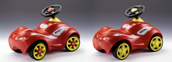 La voiture-jouet Puky originale (g) et son imitation de marque Qidong (d). (Photo de Aktion Plagiarius)