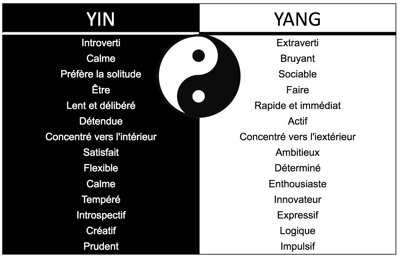Voici quelques exemples de caractéristiques des personnalités yin et yang.