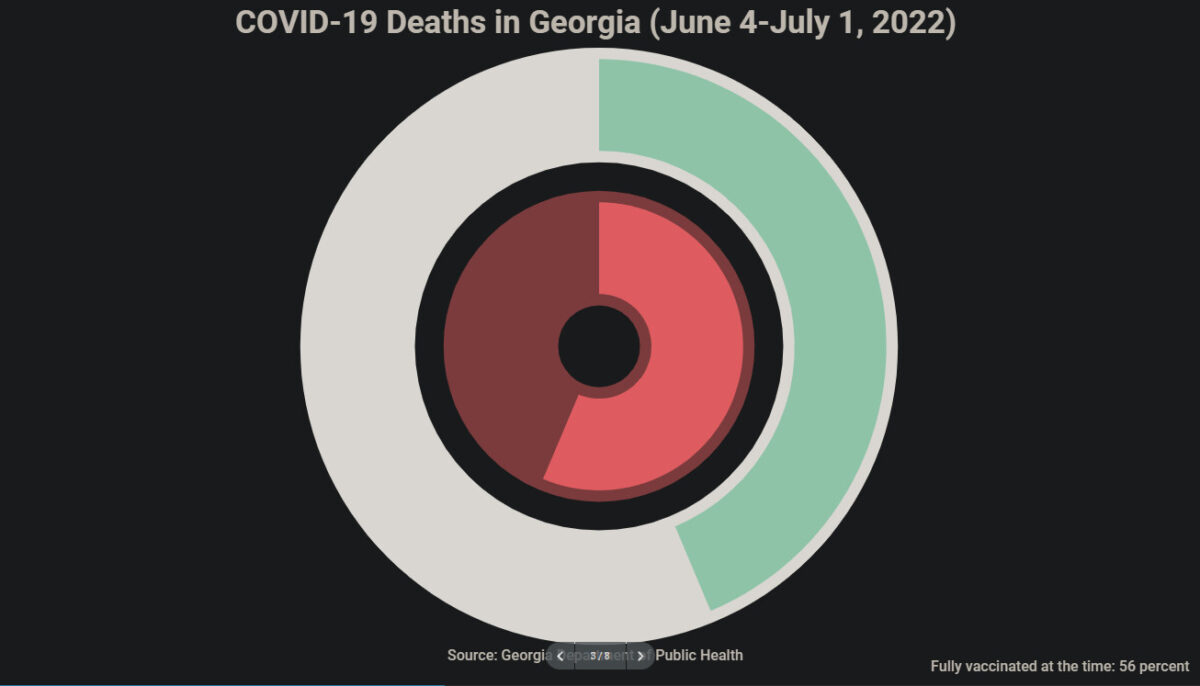 3/ Géorgie+ (4 juin‑1er juillet) : 57.489 infections perthérapeutiques (51%). 142 décès suite à une infection perthérapeutique (54% de tous les décès Covid). Taux de la population entièrement vaccinée à l’époque : 56% ;