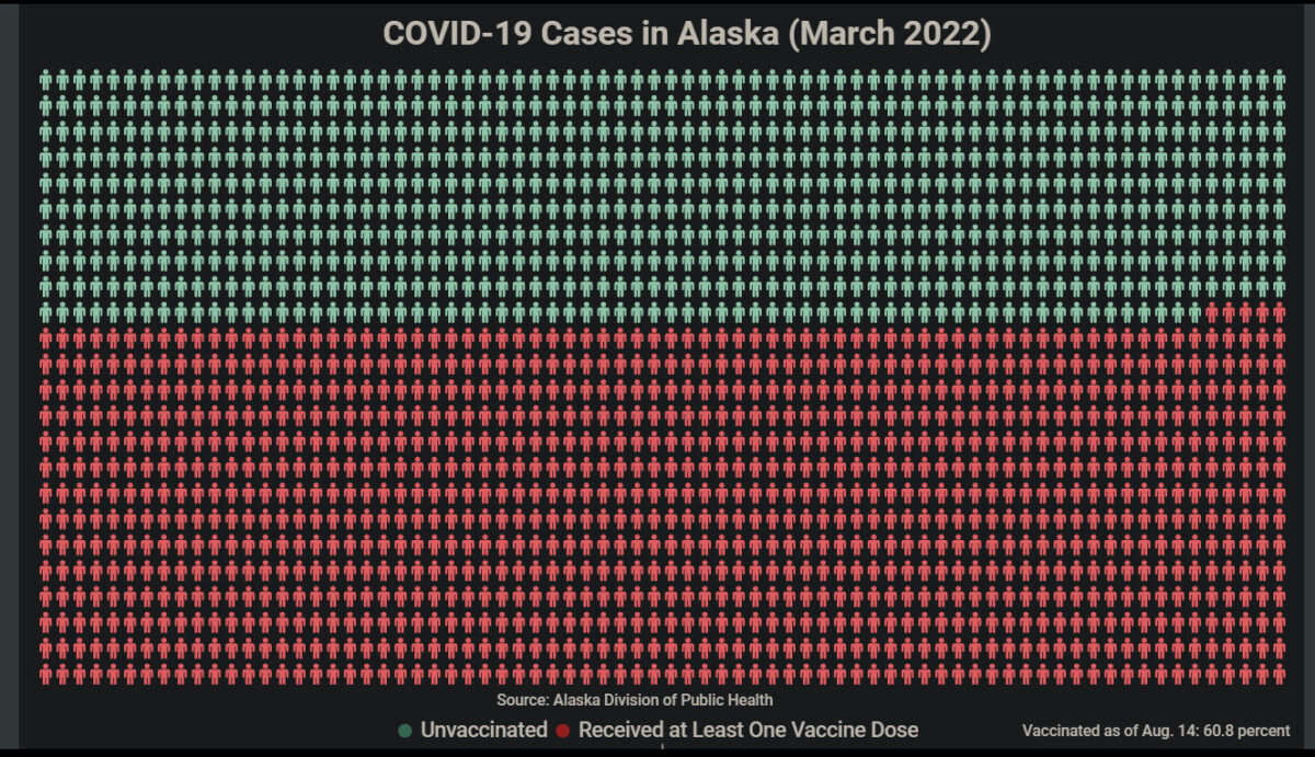 1/ Alaska* (mars) : 3995 infections perthérapeutiques (64,5% des cas). Taux de la population entièrement vaccinée à l’époque : 59,1% des habitants à partir de 5 ans et plus ;