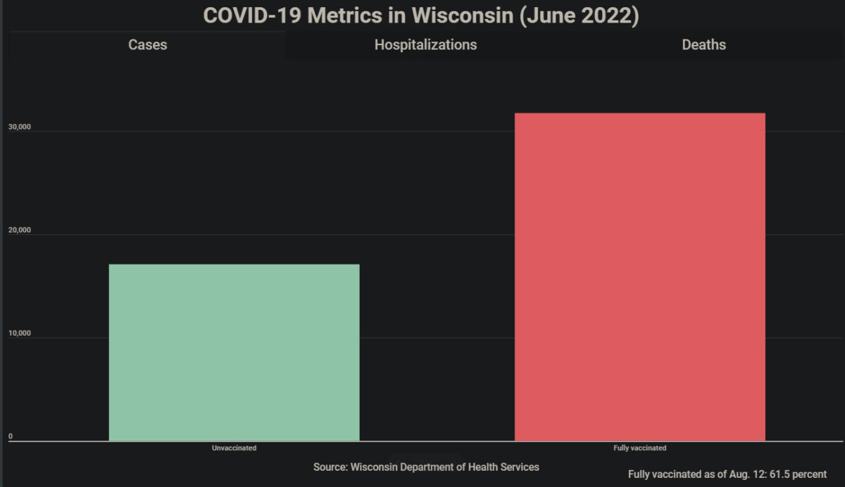 Le même mois, les vaccinés représentaient 65% des cas de Covid‑19, 64% des hospitalisations de Covid‑19 et 66% des décès de Covid‑19 dans le Wisconsin.