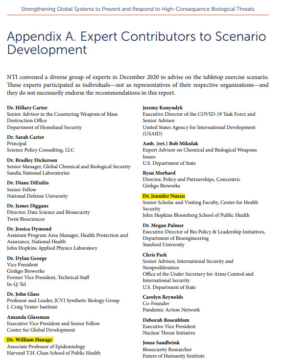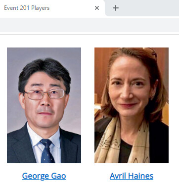 Voici M. Gao à l’Event 201, juste à côté de notre très chère Avril Haines, directrice du renseignement national – techniquement le plus haut responsable du renseignement aux États-Unis. De quoi rendre envieux Kim Philby !