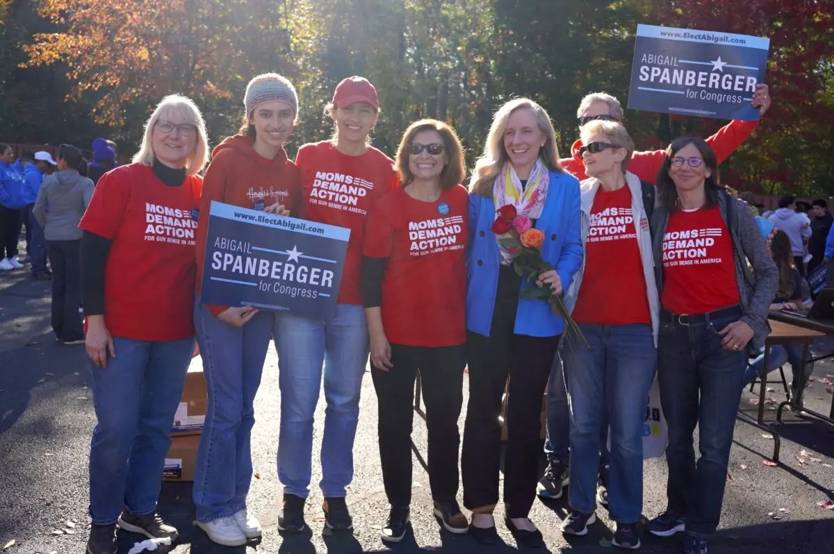 La représentante Abigail Spanberger (Parti démocrate,Virginie ) (3e à droite) avec des sympathisants de Moms Demand Action, un groupe de défense du contrôle des armes à feu, à Woodbridge (Virginie), le 22 octobre 2022. (Terri Wu/Epoch Times)Rex Rice, sénateur républicain de l’État, a été l’un des premiers partisans de la législation. Il a déclaré qu’il était également favorable à l’élément de formation de la loi. Il encourage vivement les personnes qui choisissent de ne pas obtenir de permis à suivre une formation si elles souhaitent porter une arme.