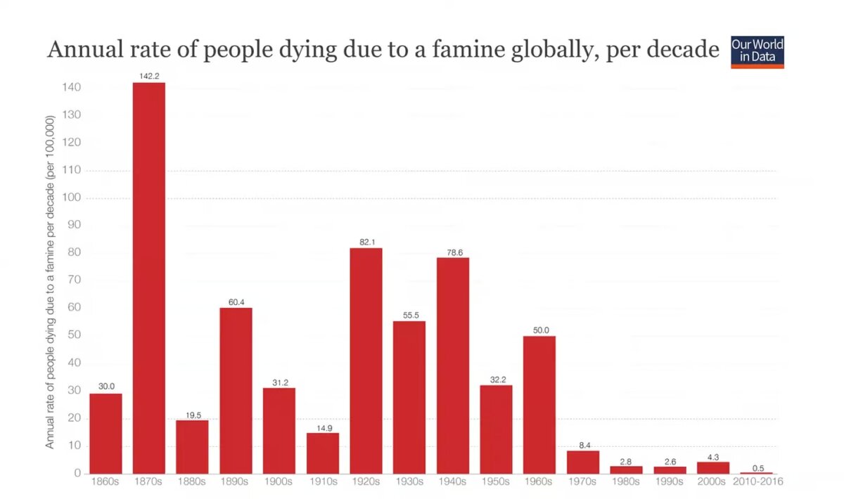 (Taux annuel de personnes mourant de famine dans le monde, par décennie)