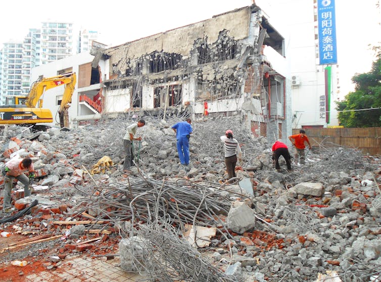 Son recyclage, difficile et coûteux, réduit sa résistance et peut catalyser des réactions chimiques qui accélèrent sa dégradation. Le monde doit réduire sa production de béton mais cela nécessitera de construire des structures plus durables.