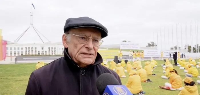 David Matas, avocat spécialiste des droits de l’homme, devant le Parlement australien à Canberra, le 28 octobre 2025. (Wang Nan/NTD)