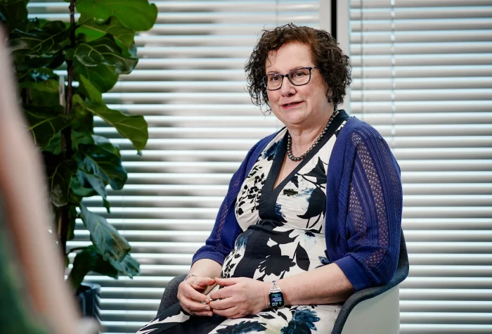 La pédopsychiatre Hilary Cass présentant, à Londres le 9 avril 2024, les conclusions de l’Independent Review of Gender Identity Services for Children and Young People. Le rapport recommande notamment un dépistage des troubles du neurodéveloppement, dont l’autisme, ainsi qu’une évaluation des problèmes de santé mentale. Yui Mok / PA Wire