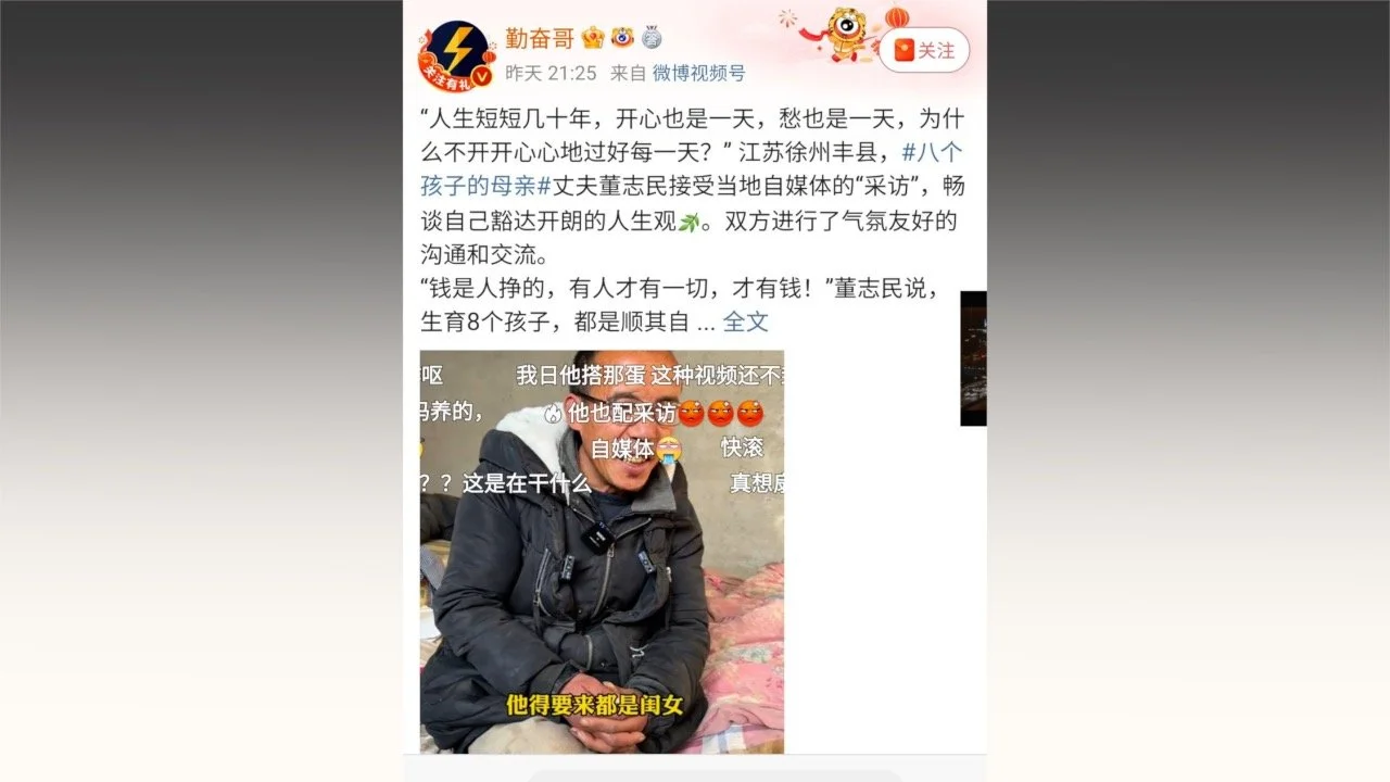 Sur Weibo, le Twitter chinois, Dong Zhimin est devenu célèbre en mettant en scène sa vie de « père » de huit enfants, de fils modèle prenant soin de sa mère âgée et de sa femme malade.