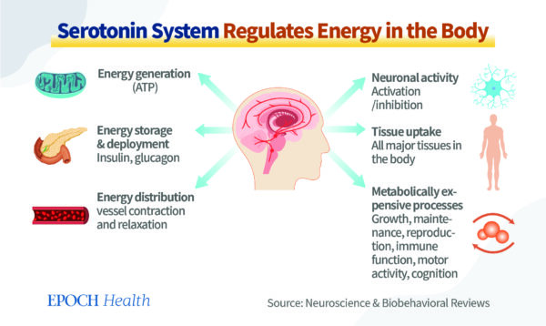 Par ailleurs, la sérotonine n’est pas seulement un « facteur de bonheur ». Il s’agit d’un système complexe qui est étroitement lié à la régulation énergétique de nombreux systèmes organiques du corps.