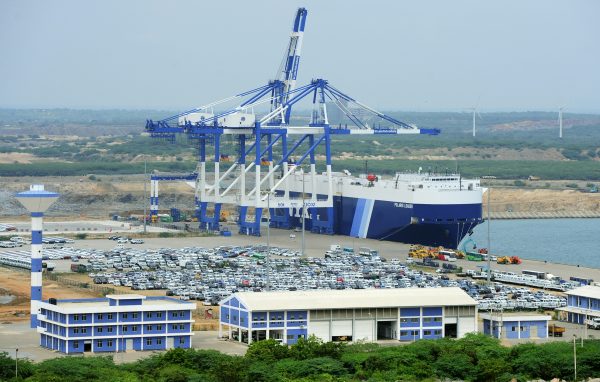 Vue d’ensemble de l’installation portuaire de Hambantota au Sri Lanka, le 10 février 2015. (Lakruwan Wanniarachchi/AFP/Getty Images)
