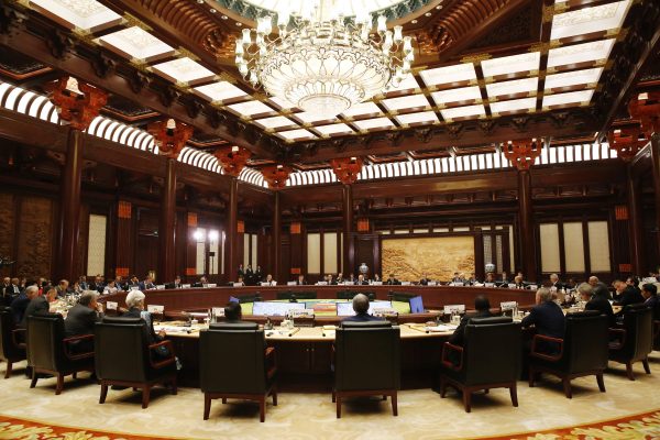 Les chefs d’État et les responsables gouvernementaux assistent à la réunion au sommet du Forum « One Belt, One Road » à Pékin, le 15 mai 2017. (Thomas Peter-Pool/Getty Images)