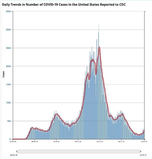 Covid.CDC.gov, Covid Cases in the US Reported to the CDC, Viewed July 15, 2021