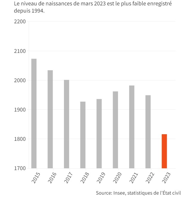 En mars 2023, la France a enregistré son plus faible nombre de naissances depuis 1994