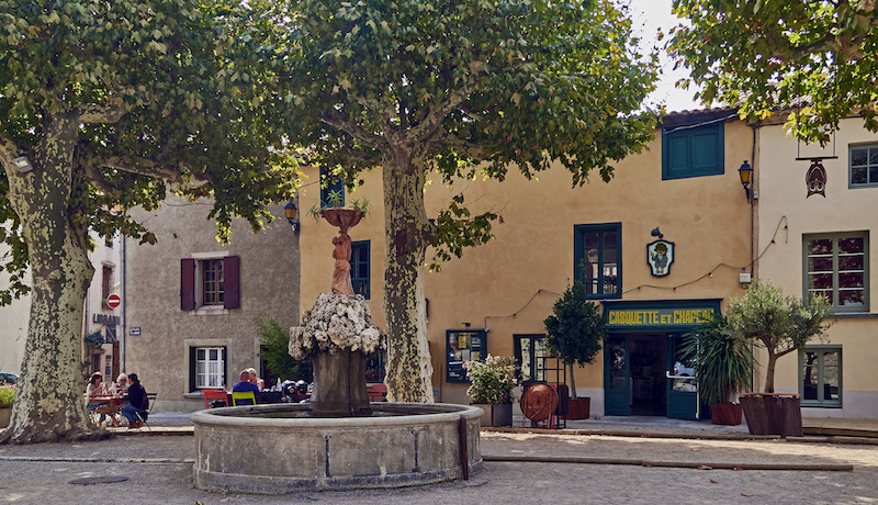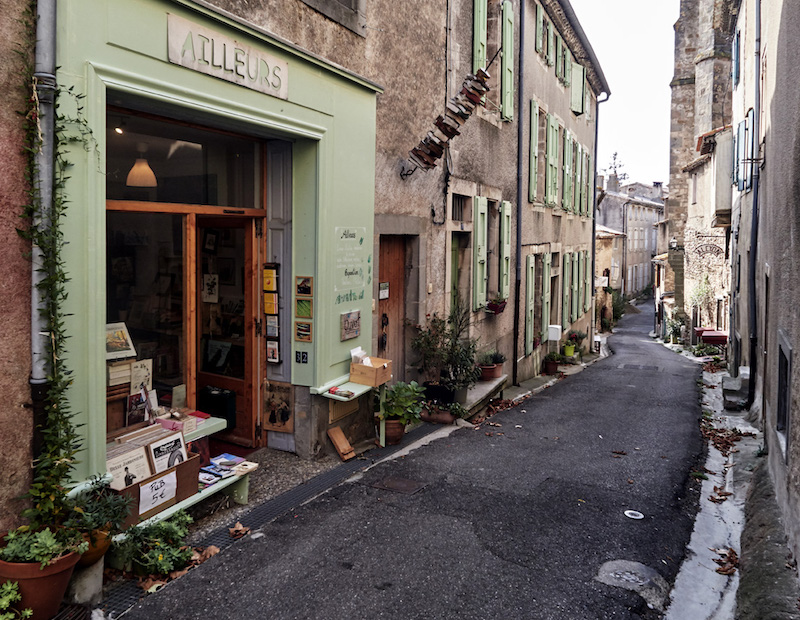 Les venelles médiévales alignent des maisons de pierre étroites et hautes dont les balcons ouvrent sur un large paysage barré par les pentes de la Montagne Noire, tapissées de forêts de sapins et de quelques vignes. La flânerie incite à pousser la porte des libraires qui racontent si bien leurs propriétaires, entre désordre apparent et étagères bien ordonnées. Les doigts glissent sur les couvertures qui ont déjà vécu, à la recherche de trésors. Le temps s’arrête dangereusement… D’autres devantures attirent le regard, celles de créateurs qui se sont regroupés pour exposer et vendre leurs objets. On fait la file devant le bureau de poste, ce sont les libraires qui envoient à leurs clients du bout du monde livres anciens ou bandes dessinées, récits de voyage ou romans de terroirs. La place de l’église s’anime dès le matin pour un petit café avant que l’heure du déjeuner ne remplisse les tables dressées sous les platanes. C’est que la carte proposée par Tristan Pontier y est alléchante avec ses recettes traditionnelles revisitées pour un prix doux dans un environnement rural qui invite à l’évasion.