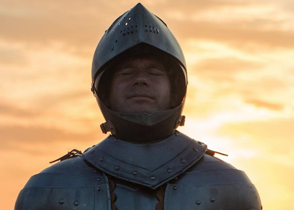 « Chevalier du 21e siècle », avec armure médiévale et téléphone portable, l’artiste performeur Abraham Poincheval sillonne la campagne bretonne à pied et sous un soleil de plomb, une performance à la fois physique et artistique.