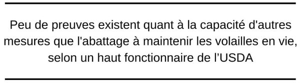 Le haut fonctionnaire de l’USDA a déclaré que peu de preuves existent quant à la capacité d’autres mesures que l’abattage à maintenir les volailles en vie.