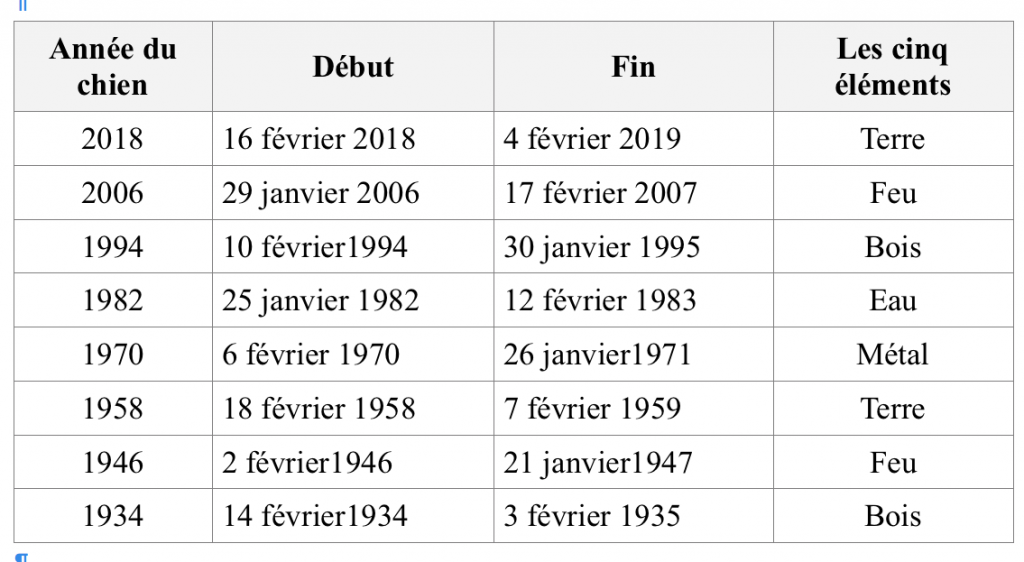 Pour le calendrier chinois, chaque année est liée à un animal du zodiaque chinois selon un cycle de 12 ans. 2018 est l’année du Chien de Terre qui prédit généralement une année ambitieuse, amicale et laborieuse