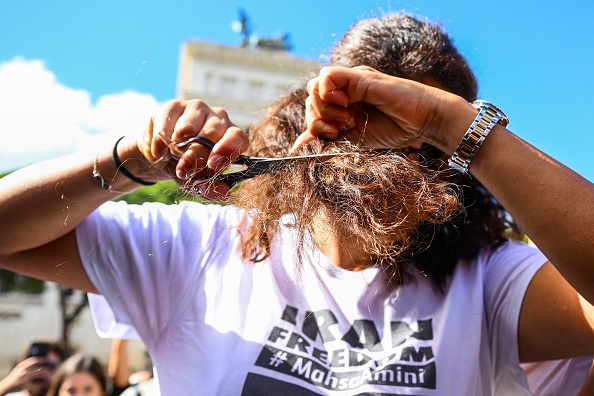 Manifestation le 1er octobre 2022 à Rome, après la mort de la femme kurde Mahsa Amini en Iran, Amini est décédée en détention le 16 septembre 2022. Photo de Vincenzo PINTO / AFP via Getty Images.