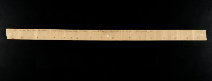 Message télégraphique de Morse, « What Hath God Wrought », envoyé et transcrit le 24 mai 1844. National Museum of American History, Smithsonian, Washington. (Domaine public)
