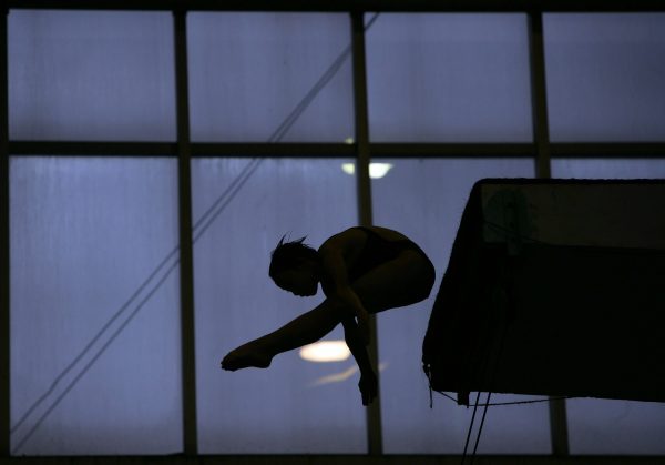 Un membre de l’équipe de plongée Chongqing Sports Technique School Diving Team s’entraîne à Chongqing, le 25 octobre 2007. Le champion olympique de plongeon Tian Liang s’est également entraîné à Chongqing. (Photos de la Chine / Getty Images)