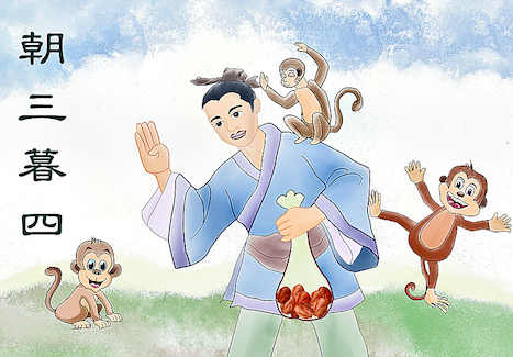 Trois à l’aube et quatre au crépuscule 朝三暮四