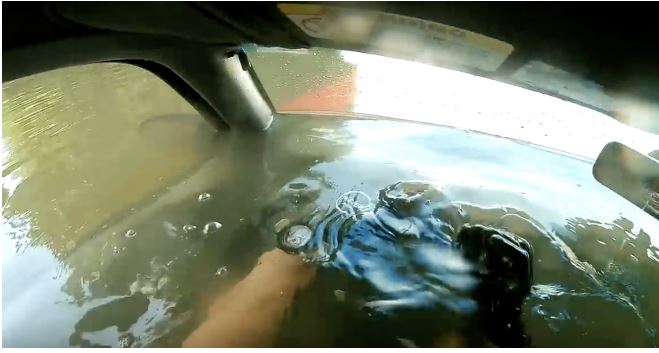 M. Koehler, qui avait son équipement de plongée avec lui, a aidé le conducteur de la dépanneuse à mettre une paire de crochets dans l’eau pour ramener le véhicule sur la terre ferme. Il a ensuite dû monter dans le camion et essayer de le mettre dans la position de parking, en espérant qu’il maintiendrait le véhicule hors de la rivière pendant qu’ils essayaient de sauver ce qu’ils pouvaient.