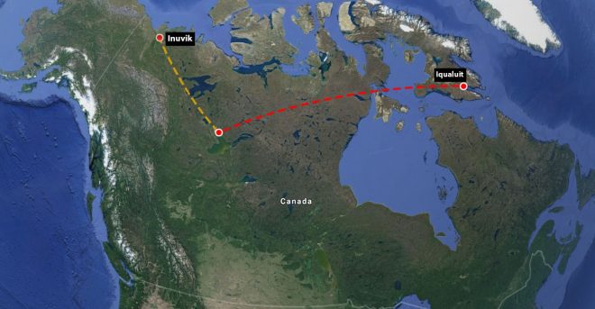 Sa destination accidentelle est la capitale du Nunavut, le territoire arctique à prédominance inuite que le Canada a officiellement séparé des Territoires du Nord-Ouest à la fin des années 1990.