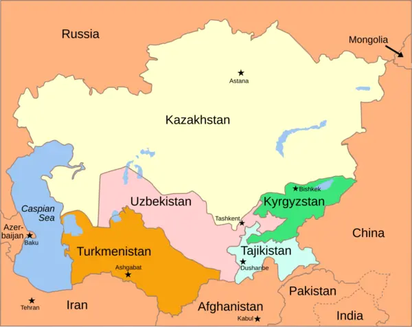 Carte de l’Asie centrale. (CC BY-SA 3.0 [https://creativecommons.org/licenses/by-sa/3.0]/Wikimedia Commons)